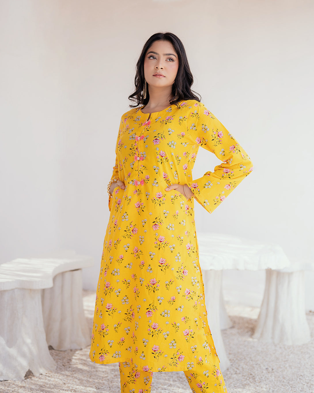 Fabric: Soft Lawn. Fit: Relaxed & Flattering. Digitally Printed. Shirt Solid. Matching Trouser Ideal for Everyday & Semi-Casual Wear.