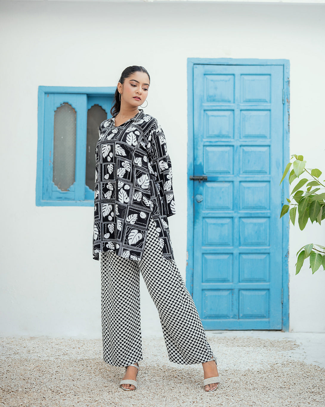 Fabric: Soft, breathable non-lawn material. Digitally Printed Abstract Pattern. Relaxed & Flattering Fit. Ideal for Daywear, Travel, or Lounge Style. Easy to Pair with Flats or Heels.