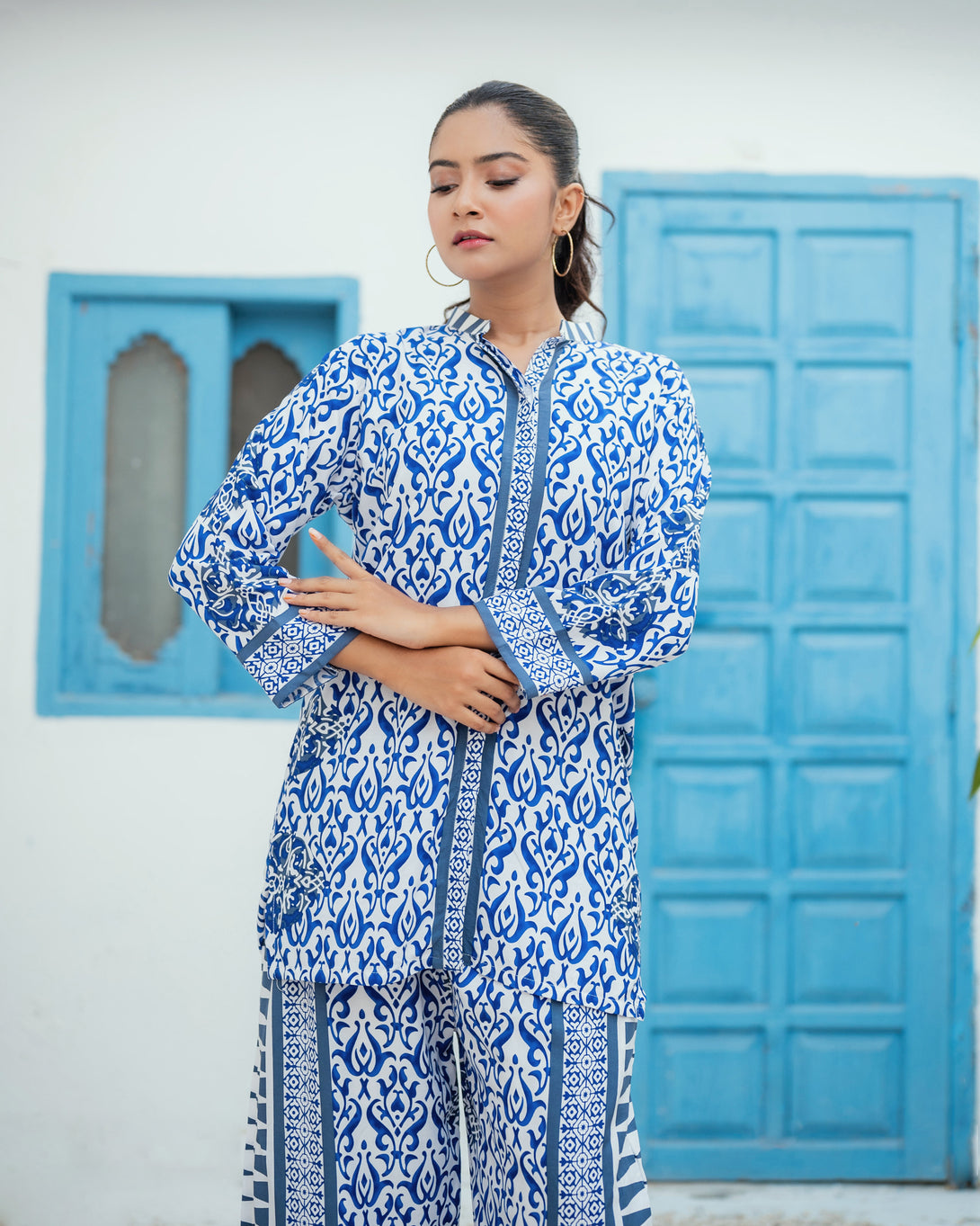 Fabric: Soft, breathable non-lawn material. Digitally Printed Abstract Pattern. Relaxed & Flattering Fit. Ideal for Daywear, Travel, or Lounge Style. Easy to Pair with Flats or Heels.